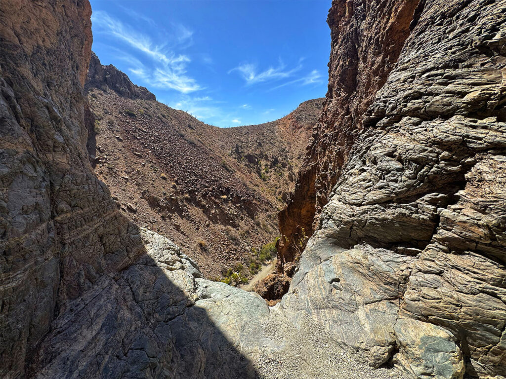 Having crossed back into Mountain Standard Time, we gained an extra hour in our day. The Devil’s Hall Trail begins at the Pine Springs Campground, not far from the trailhead for Guadalupe Peak. This 4.2-mile out-and-back route gains 548 feet in elevation. The first mile winds through a forested area with some moderate ascent before dropping into a rugged, boulder-strewn wash. From there, the trail leads to a striking natural rock staircase that ascends into a narrow “hallway” flanked by steep canyon walls. It reminded me of The Narrows in Zion—dry, less extensive, but just as dramatic.