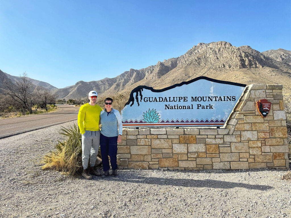 We paused at the park entrance to take our customary photo and then stopped at the visitor center to consult with a ranger about trail conditions. Given the current weather, we decided to hike the Devil’s Hall Trail that afternoon. If the forecast for the following day held true—with calmer winds and plenty of sunshine—we’d attempt the Guadalupe Peak summit. Plan B would be the Permian Reef Trail.