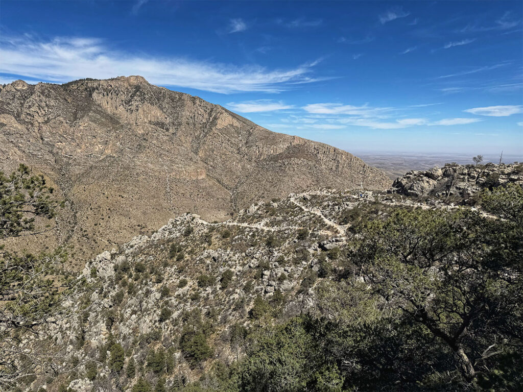 The Guadalupe Peak Trail—often called “The Top of Texas”—leads to the state’s highest point at 8,751 feet. It’s an 8.4-mile out-and-back route with 3,000 feet of elevation gain. From the outset, the trail climbs steeply via a series of switchbacks. A park ranger had warned us that the first 1.5 miles would be the most strenuous, and she wasn’t exaggerating. The path was exposed, with precipitous drop-offs along one side—daunting even for seasoned hikers.