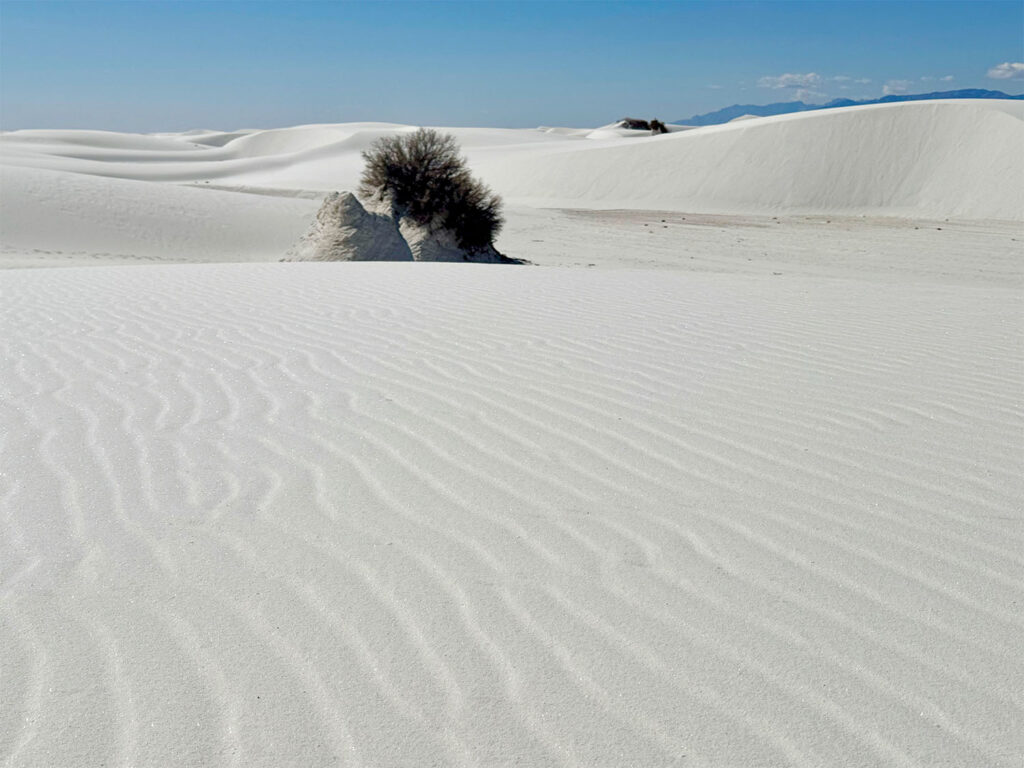 We chose to cut across the loop at the halfway point, as the wind was picking up and several trail markers had been knocked over. We took the time to reset two of them, hoping to help others stay on course. Compared to the Mesquite Dunes in Death Valley, the gypsum here was much softer, and the dunes slightly smaller—but no less photogenic. The landscape was absolutely stunning.
