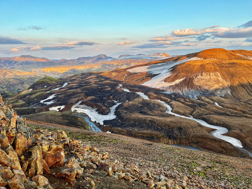 Golden hour view from the Hrafntinnusker Hut
