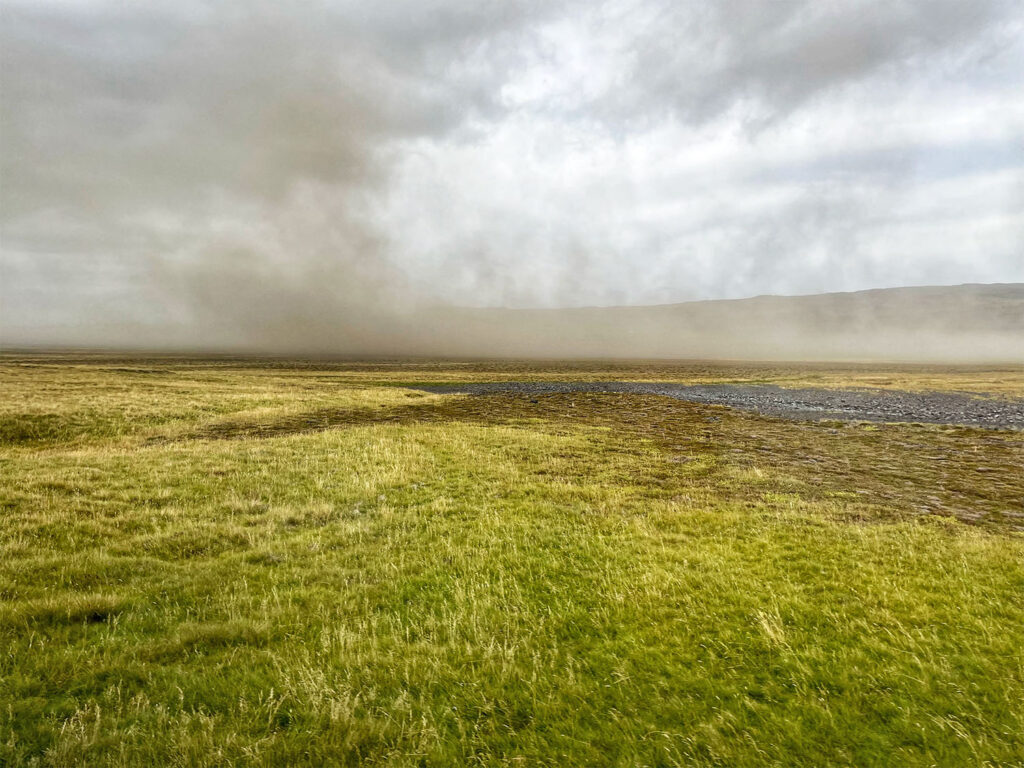 Because we hadn’t arrived in Þórsmörk until 5 PM the previous day, our group was scheduled for an optional morning hike in the surrounding area. Despite the less-than-ideal weather and concerns about strong winds—which were fortunately delayed until later in the day—most of the group chose to participate. In fact, by that afternoon, park authorities began evacuating all hikers from Þórsmörk due to worsening conditions.