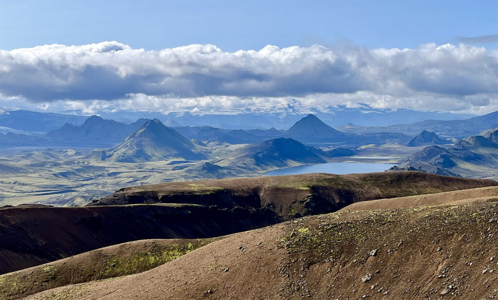 As we crossed the plateau, the landscape ahead began to open up. In the distance lay the Álftavatn Valley—green and black mountains framing a wide, still lake. Though I’ve never seen The Lord of the Rings, several fellow hikers likened the dramatic view to Mordor—rugged, haunting, and beautiful all at once.
